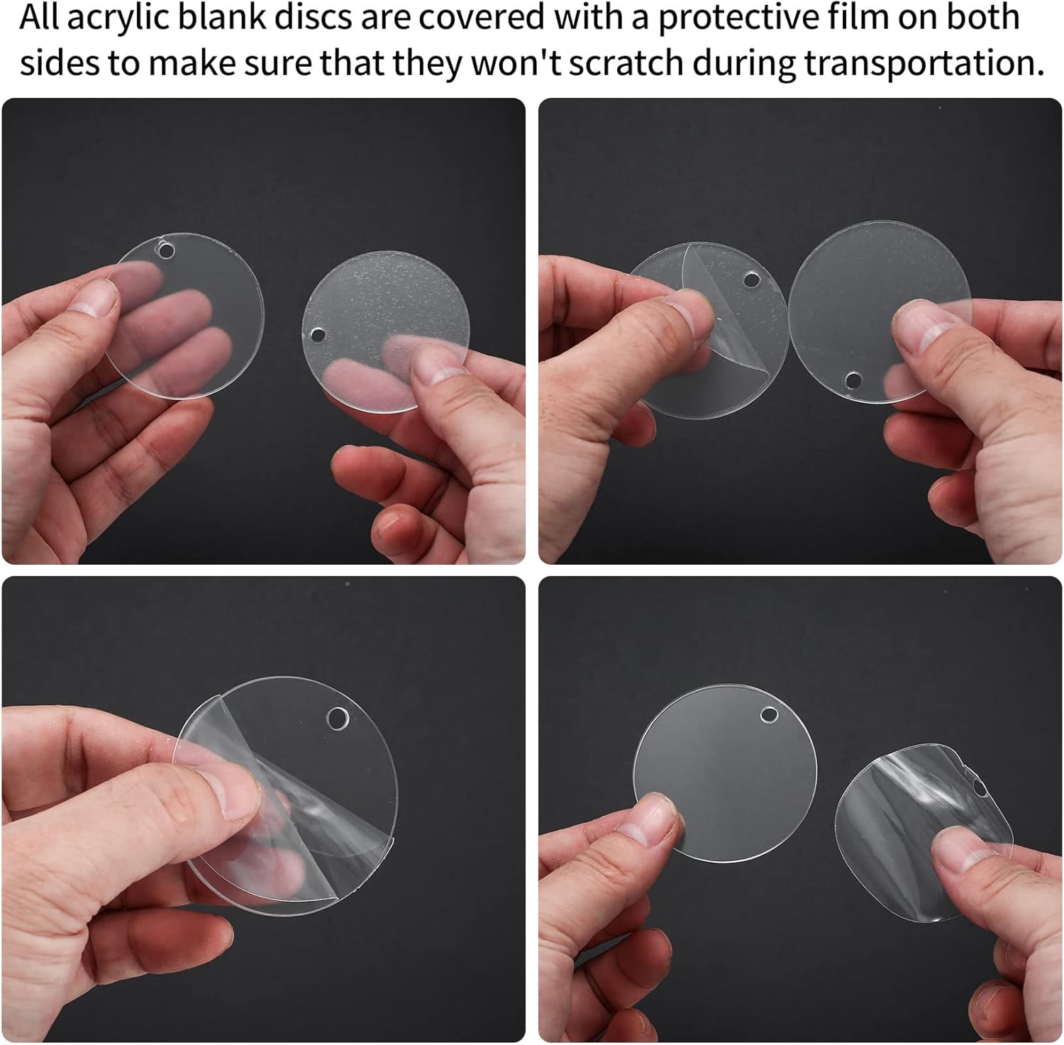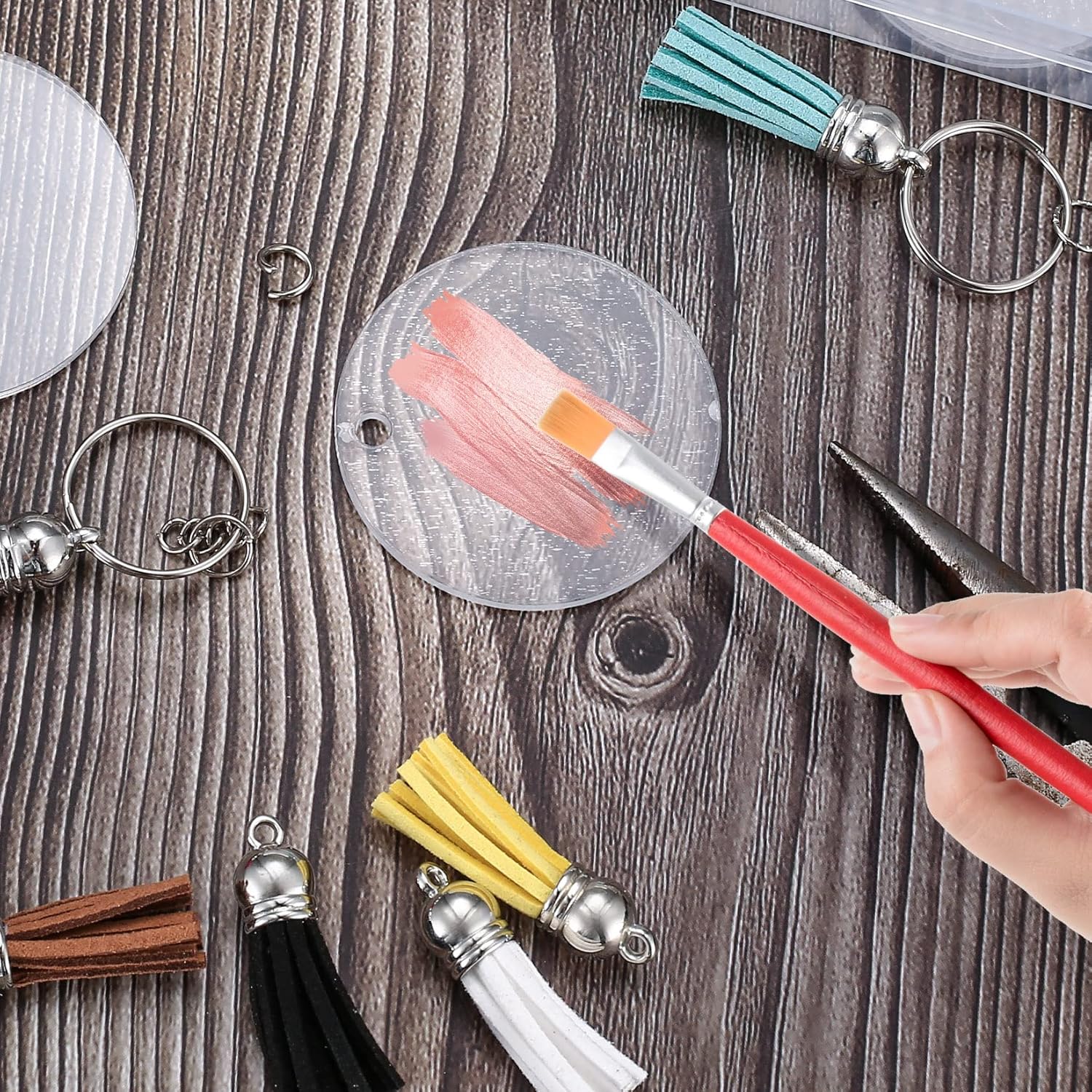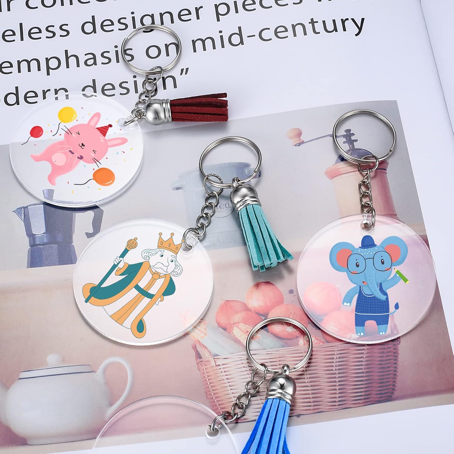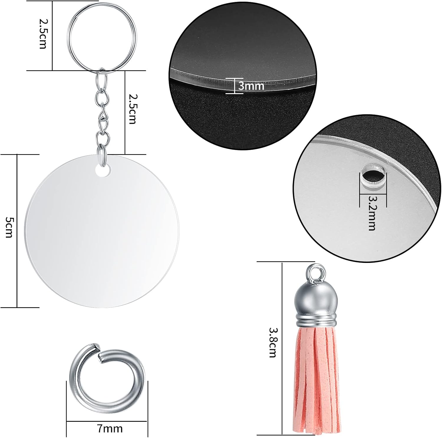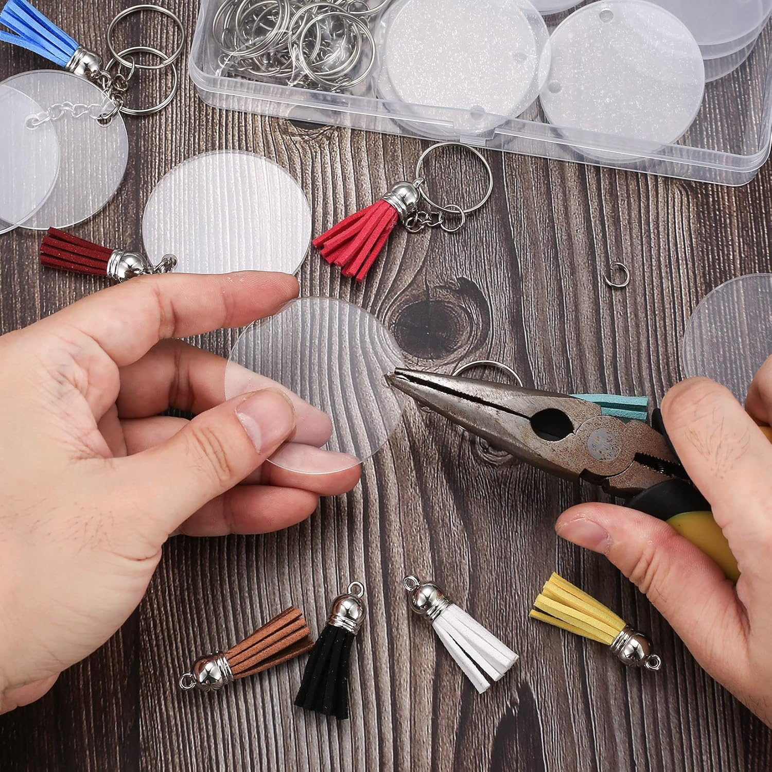 80 Pièces Acrylique Porte-clés Disque Glands Set, Cercle Pendentifs, Transparent Ronde Anneaux de Saut pour DIY