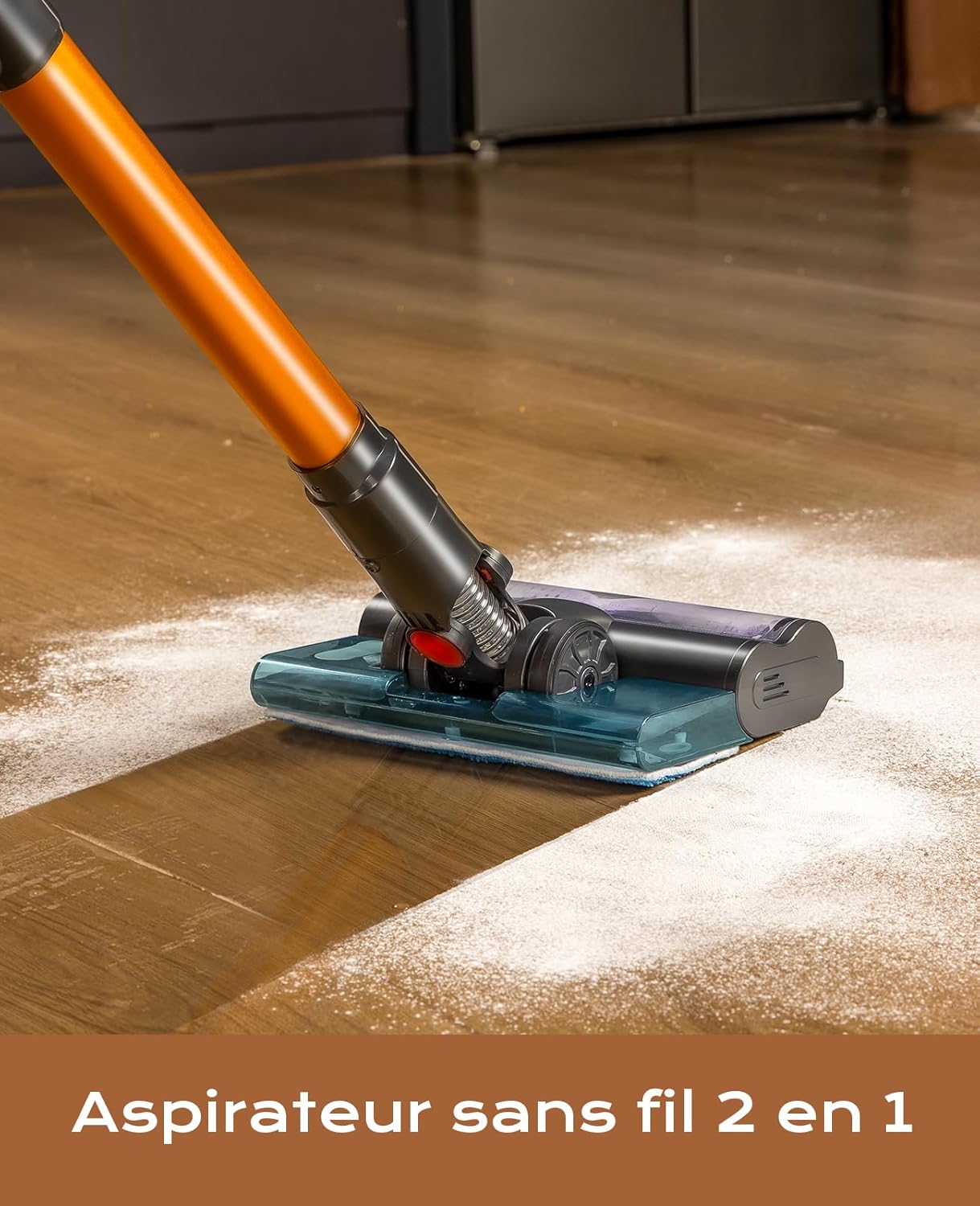 - 【 45 kPa de potencia de succión 】 El moteur sin escobillas ofrece une potencia de succión de 45 kPa, lo que le rhodillo motorizado recoja eficazmente la suciedad en todas las superficies. Au quitar el paño de limpieza y el tanque de agua, el V15 MOPX se convierte en un puissant aspirador inalámbrico, ideal para limpiar alfombras.