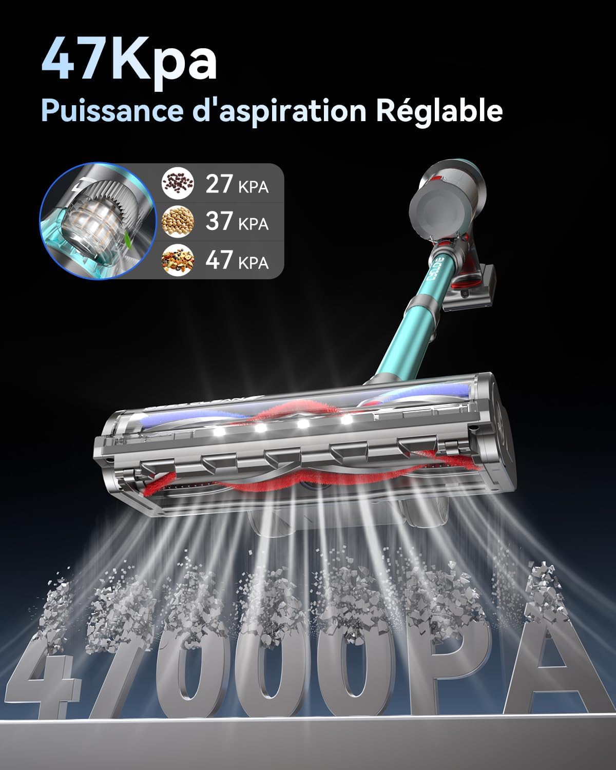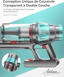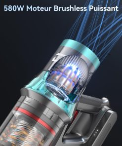 - Moteur sans Balais Haute Performance de 580W: L’aspirateur balai sans fil YU7 est doté d’un moteur sans balais haute performance de 580W, fournissant une puissance d’aspiration allant jusqu’à 47 KPa. Il permet de nettoyer facilement les parquets, carrelages et tapis, avec une efficacité de nettoyage considérablement améliorée.