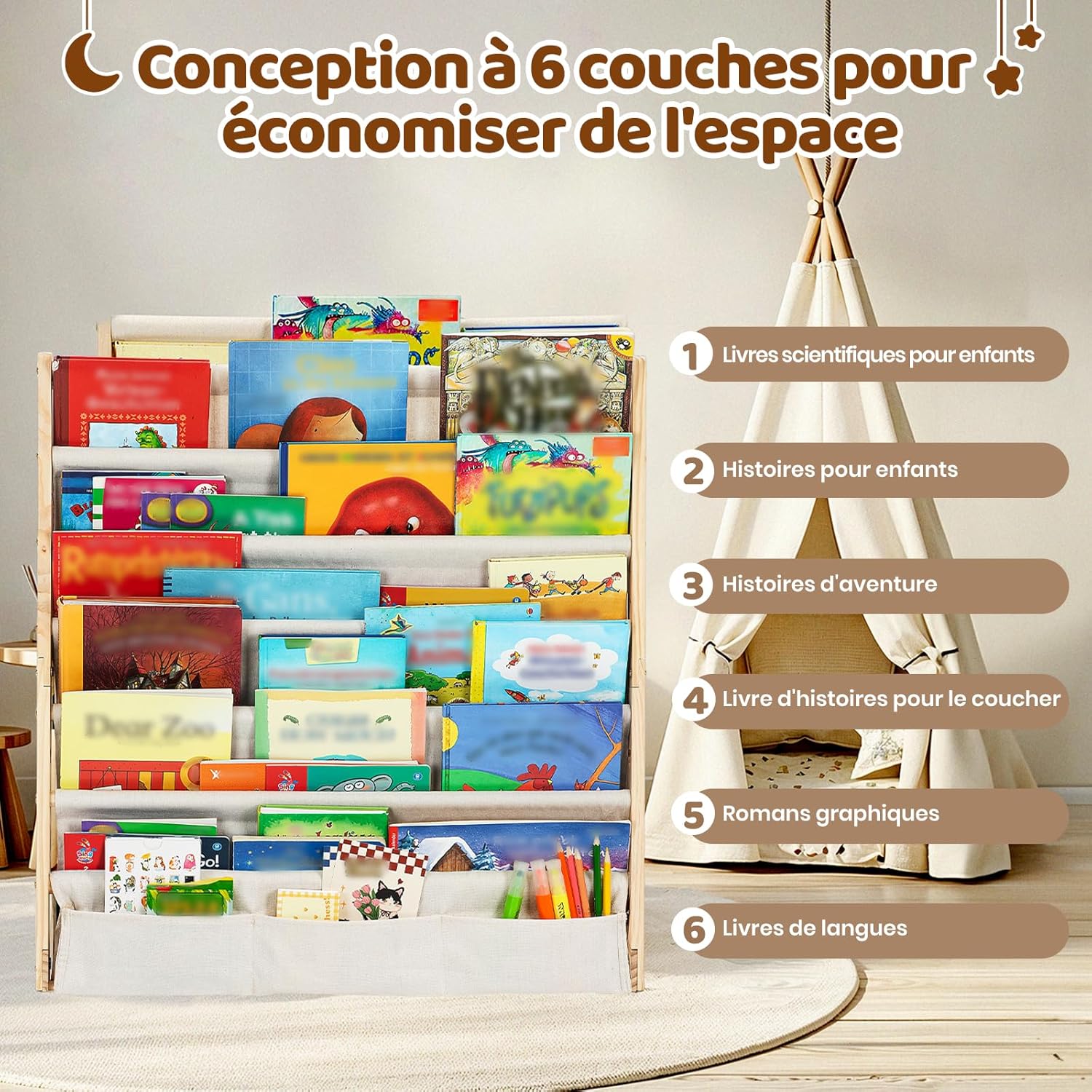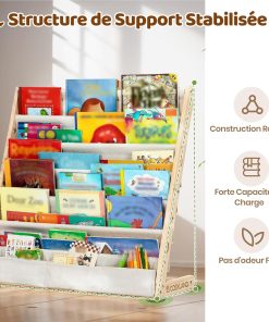 - Bibliothèque Enfant à 7 Niveaux pour un Accès Facile : Cette étagère à livres pour enfants dispose de 7 niveaux inclinés, permettant aux tout-petits de voir et de choisir aisément leurs livres préférés, favorisant ainsi leur autonomie et leur amour de la lecture