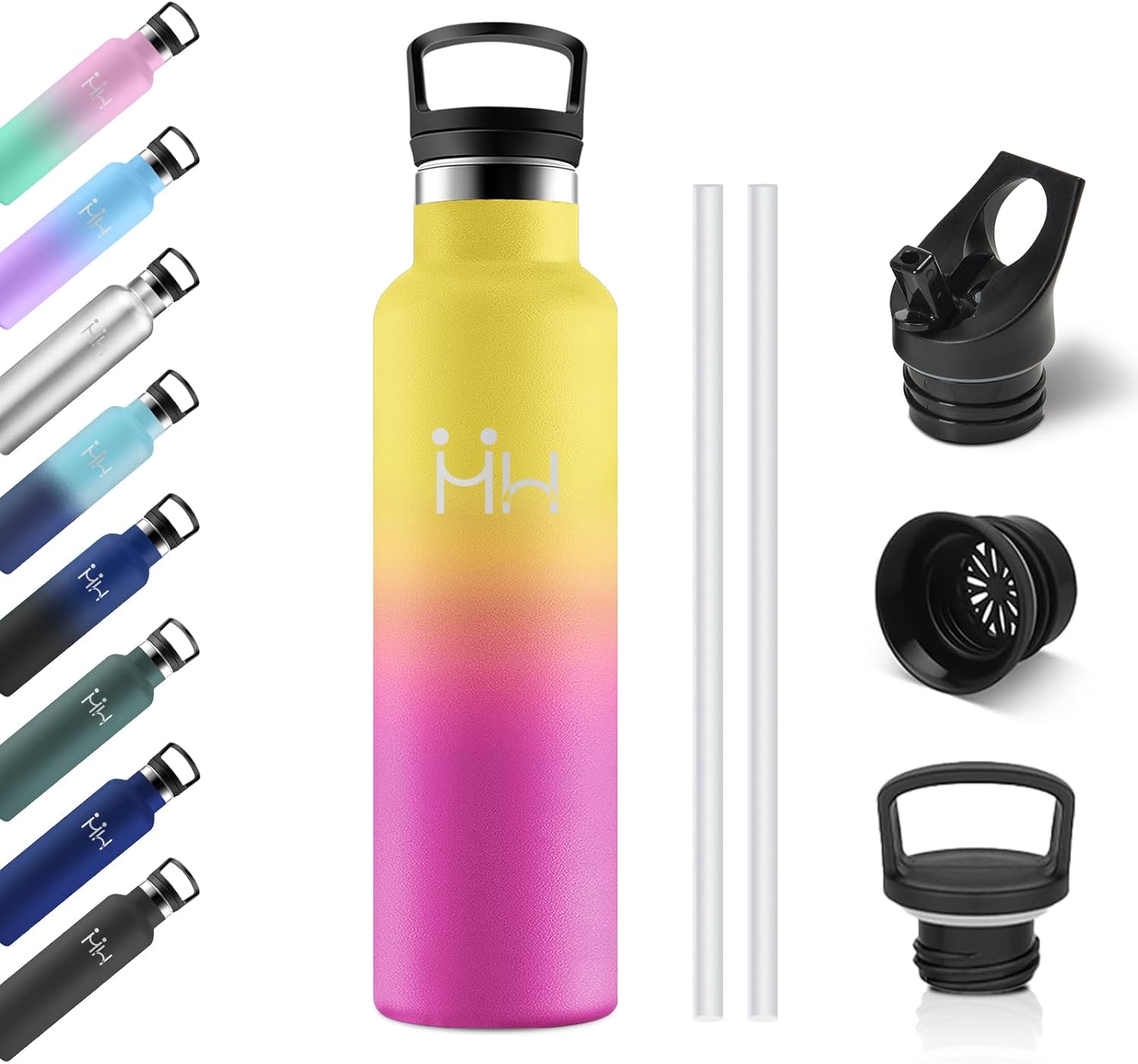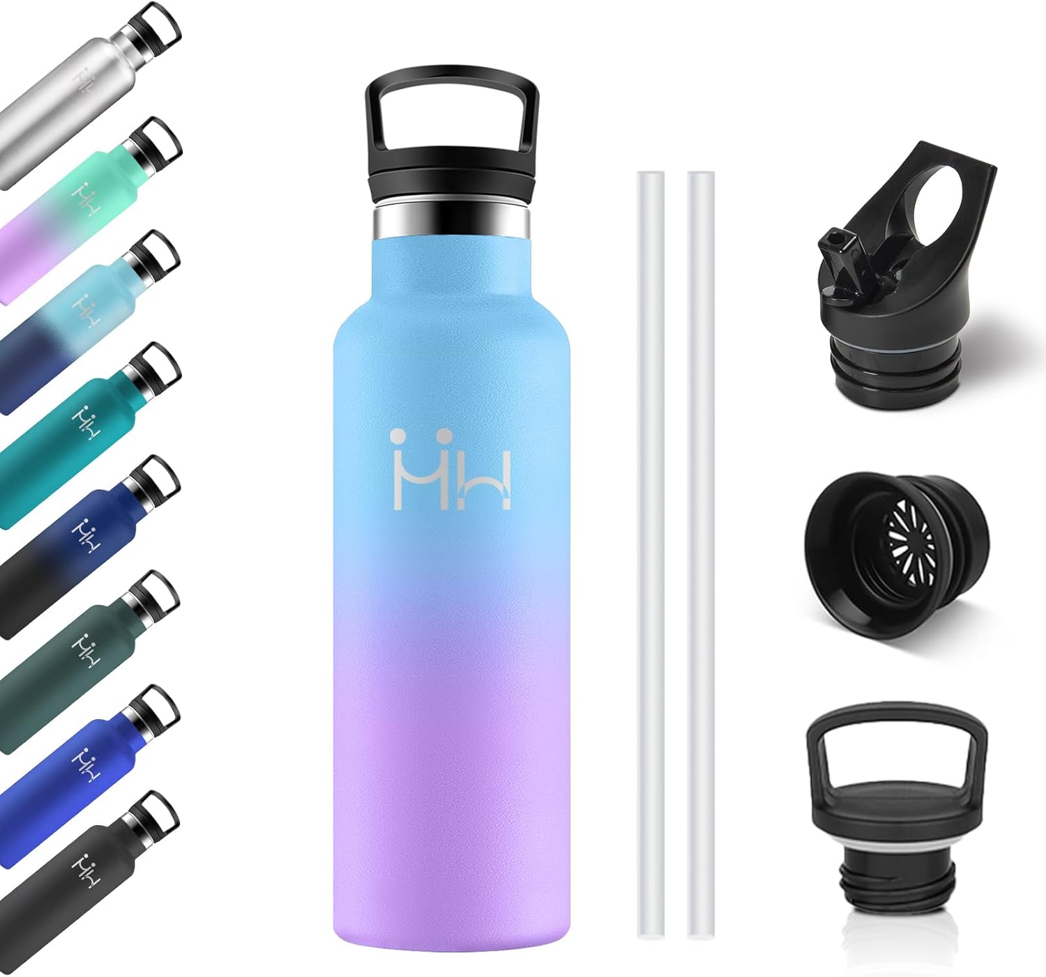 Bouteille Isotherme 750ml, Gourde Acier Inoxydable, Isolation À Double Paroi Sous Vide, sans BPA, Gourde Inox avec Paille, Anti-Fuite et Réutilisable, pour Adultes, Sport, École, Randonnée, Jogging
