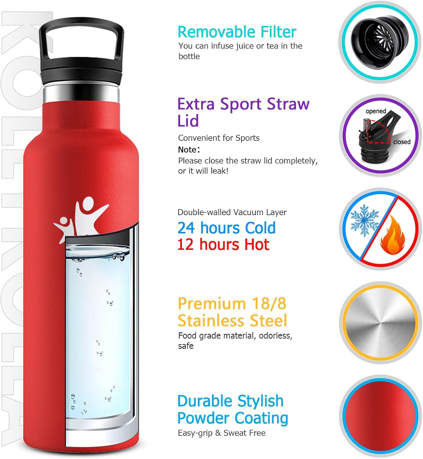 - ★Bouteille d’eau en acier inoxydable 500ML : Ne comptez plus sur les bouteilles d’eau en plastique bon marché qui peuvent éclater, notre bouteille isotherme est fabriquée à partir de matériaux durables, pour une bouteille qui résiste à vos séances d’entraînement les plus intenses ! La KollyKolla gourde Inox 500ml est réutilisable et facile à nettoyer. Elle est idéale pour diverses occasions – que ce soit au bureau, à l’école ou pour les activités sportives des enfants.