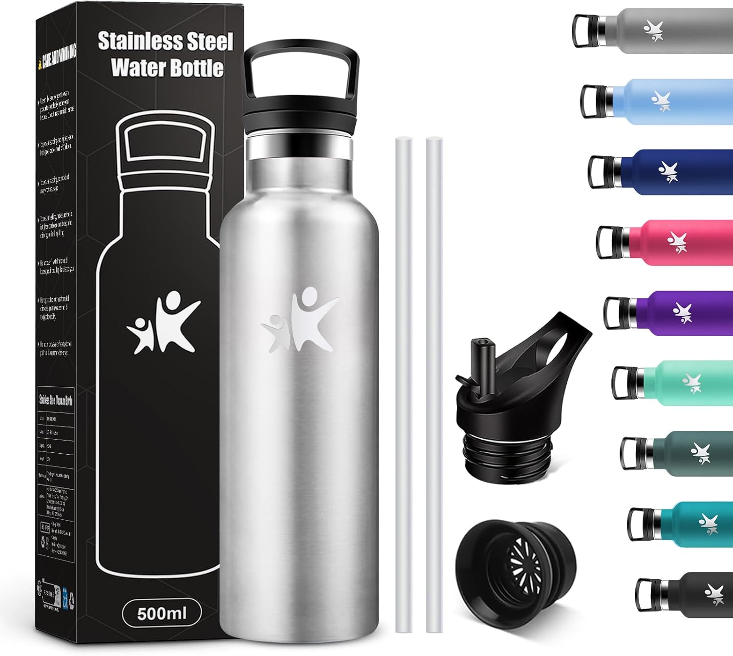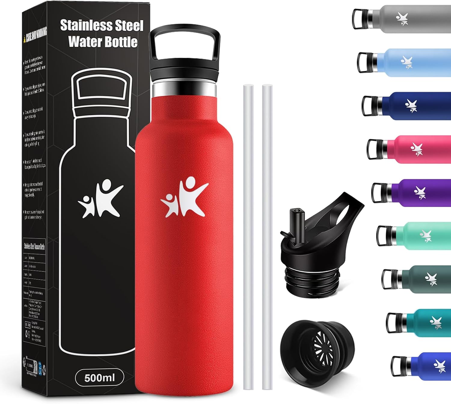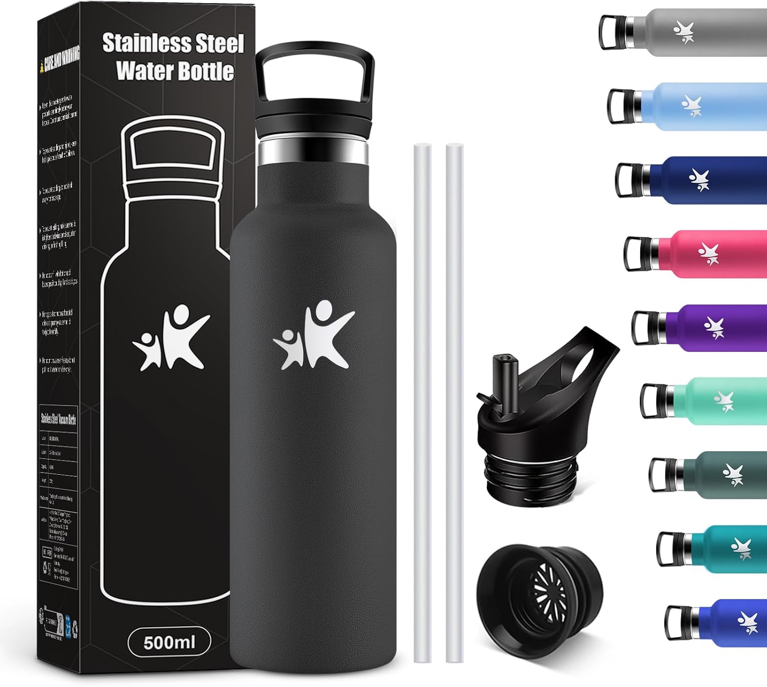 - ★Isolation Sous Vide: Le design avancé à double paroi de la bouteille isotherme 500ml maintient vos boissons à la température idéale pendant des heures. Profitez de vos boissons à la température idéale, que ce soit en été chaud ou en hiver froid. Et même les boissons gazeuses restent fraîches!