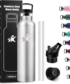 - ★2 Couvercles pour Remplacement: (1) Couvercle en paille: elle vous permet de boire facilement de l’eau / des boissons sans retirer le couvercle, ce qui convient aux sports et aux activités de plein air. (2) Capuchon de la poignée: ce capuchon est livré avec une bague de transport et un filtre. Il peut bloquer le thé, les fruits et les glaçons, etc. Remarque: le filtre doit être utilisé avec le couvercle ou le couvercle ne peut pas tenir dans la bouche de la bouteille.