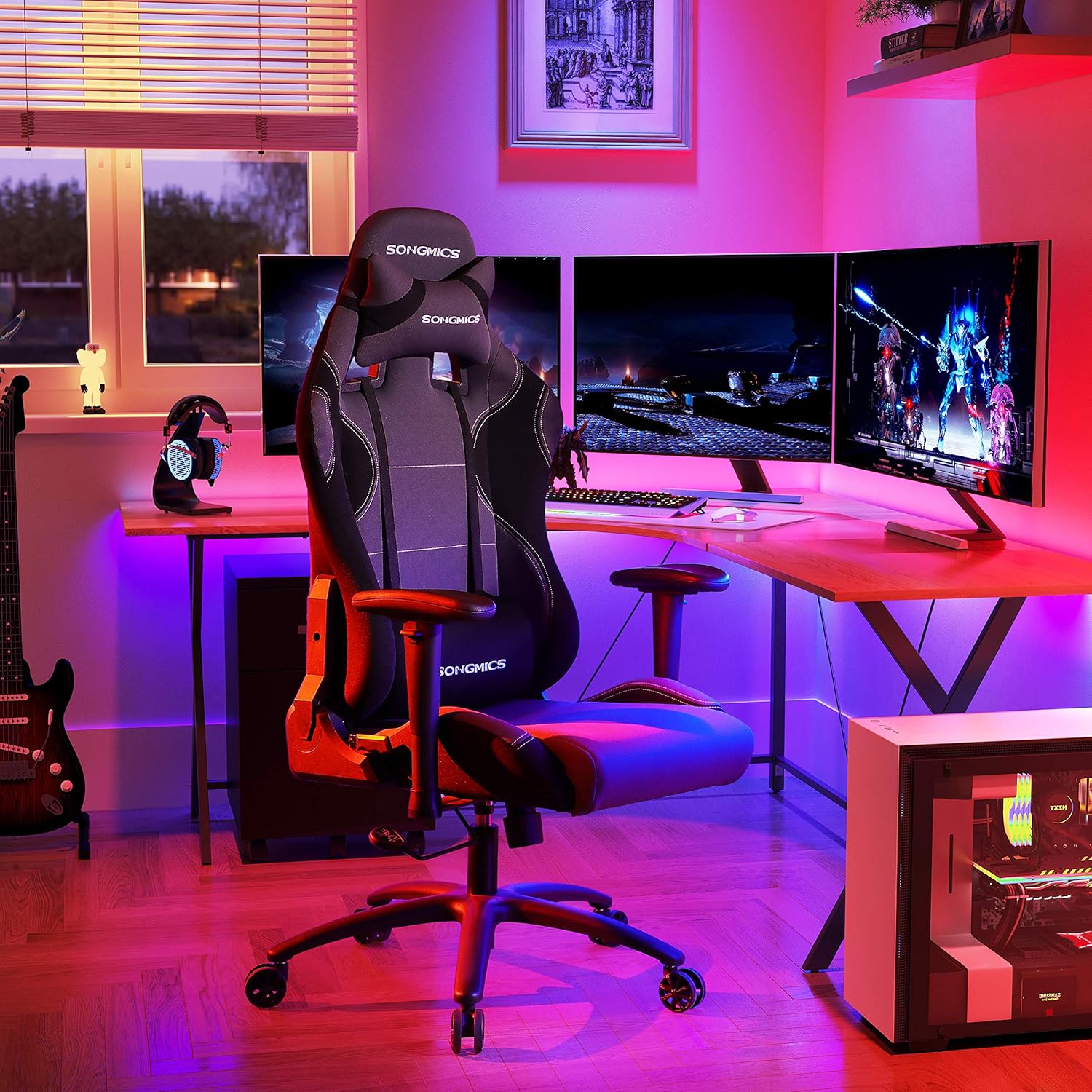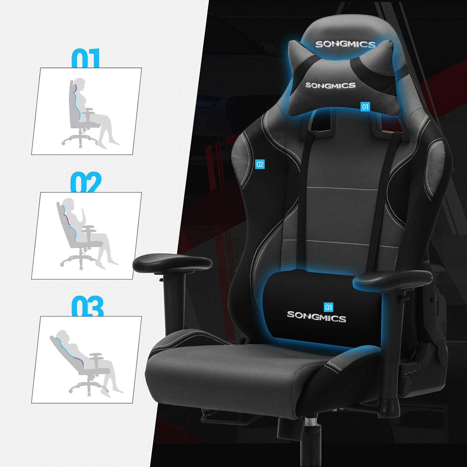 Très confortable et bien conçue, cette chaise SONGMICS combine un bon maintien du dos et une assise agréable pour de longues sessions au bureau ou en jeu. Le montage est simple, les matériaux semblent solides et le coloris noir/gris est sobre et élégant. L’ajustement en hauteur fonctionne bien et la chaise reste stable même après plusieurs semaines d’utilisation. Très satisfait de cet achat.