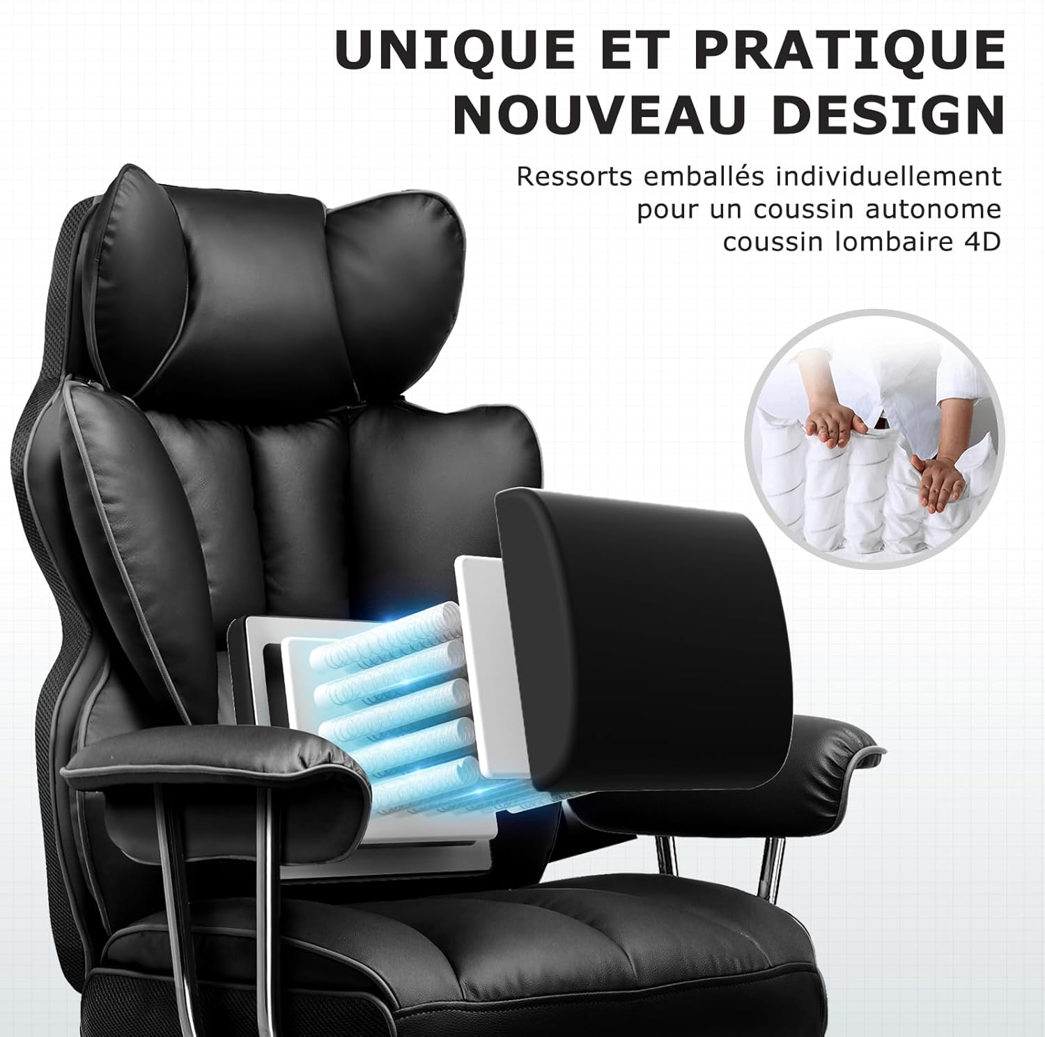 - 【Un Confort Exceptionnel】 Découvrez la position la plus relaxante ! Notre chaise gaming ergonomique suit les courbes naturelles du corps. La mousse haute densité utilisée offre une respirabilité optimale, alliant douceur et soutien. Les repose-pieds escamotables sont parfaits pour se détendre.Profitez d’un confort exceptionnel pendant de longues sessions de travail ou de jeux. L’assise et le cadre de la chaise gaming sont en bois certifié FSC.