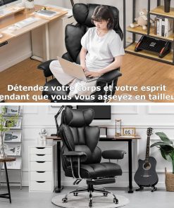 Chaise confortable et bien conçue, avec un bon maintien du dos et une assise agréable pour de longues sessions. Le repose-pieds télescopique et les réglages de hauteur sont pratiques et faciles à utiliser, et la finition noire est sobre et soignée. Bon rapport qualité-prix.