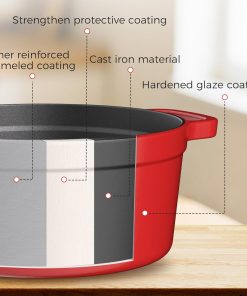 - Excellente rétention de chaleur : La fonte retient et répartit la chaleur de manière uniforme pour des plats mijotés, soupes ou rôtis sans point chaud.