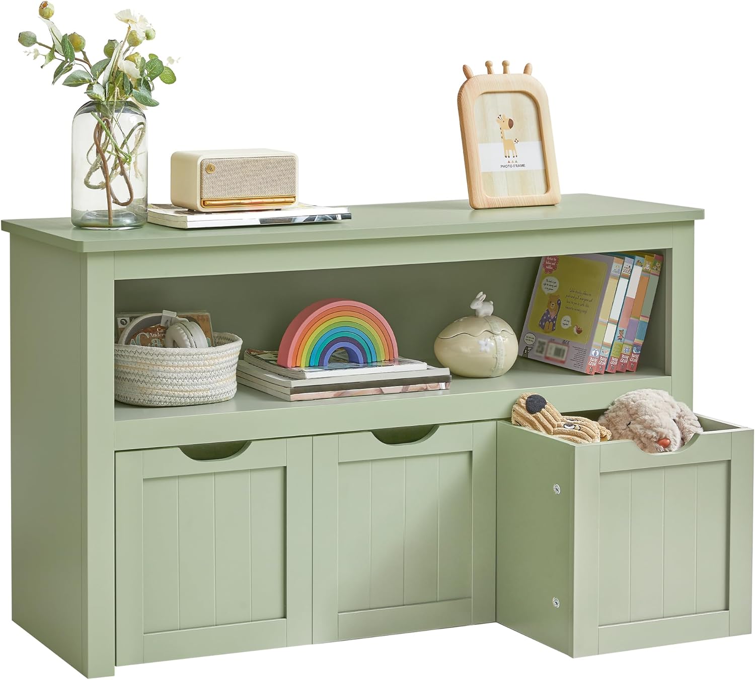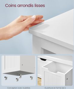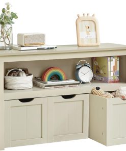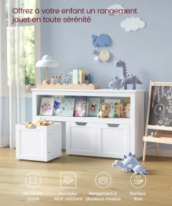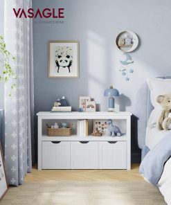 Très pratique et joli, ce meuble VASAGLE pour jouets est facile à monter et offre beaucoup de rangement grâce aux trois bacs à roulettes; le blanc s’intègre bien dans la chambre ou le salon, les roulettes roulent bien et la structure semble assez solide pour un usage quotidien — parfait pour organiser la salle de jeu sans prendre trop de place.
