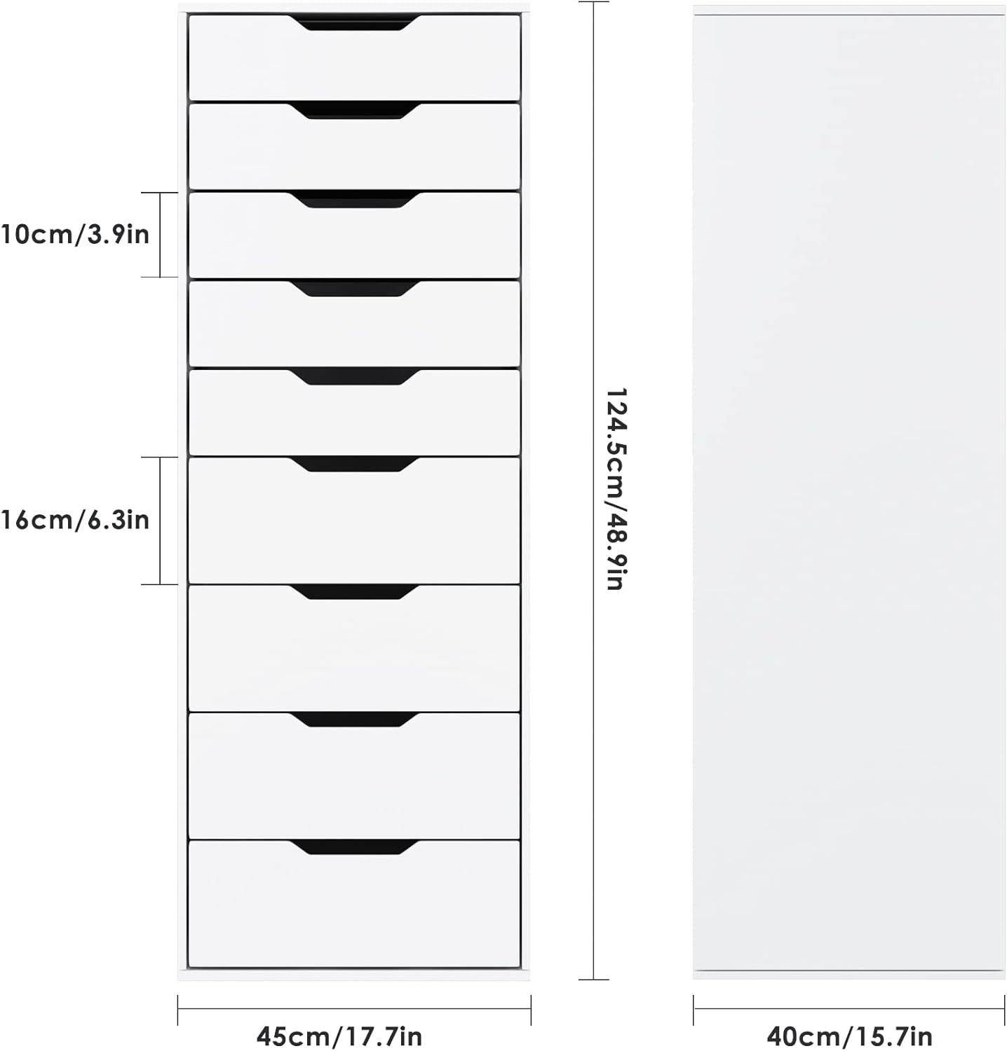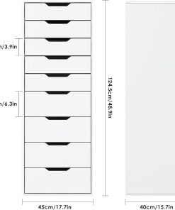 - Facile à assembler : la dimension du meuble de rangement est de 45x40x124.5cm. Les pièces numérotées et le manuel d’installation détaillé vous aident à installer facilement. Veuillez noter que la commode 9 tiroirs est livrée en 2 colis