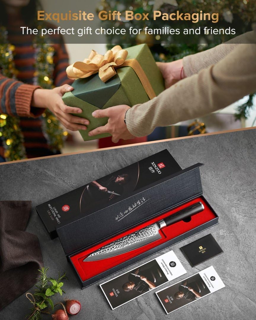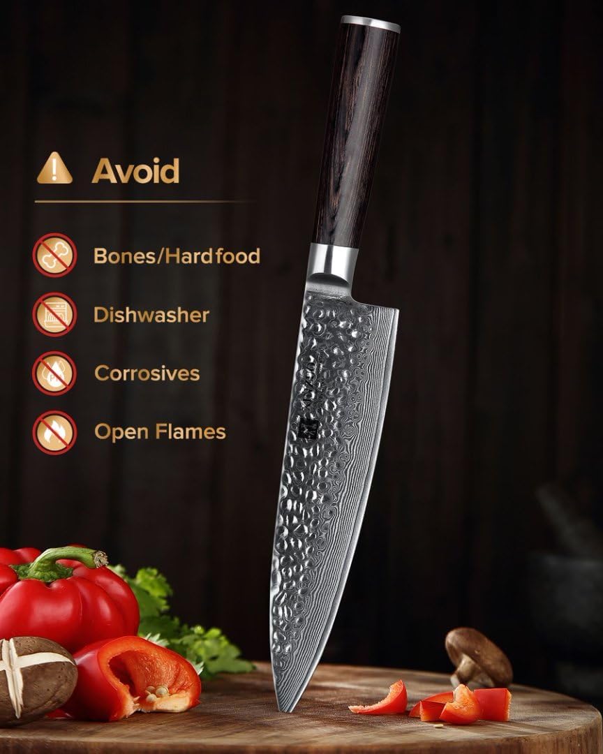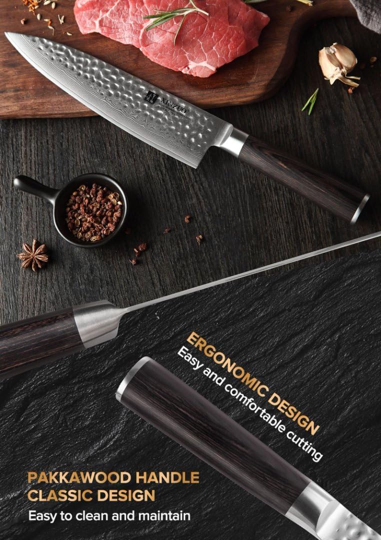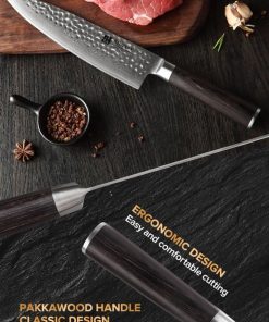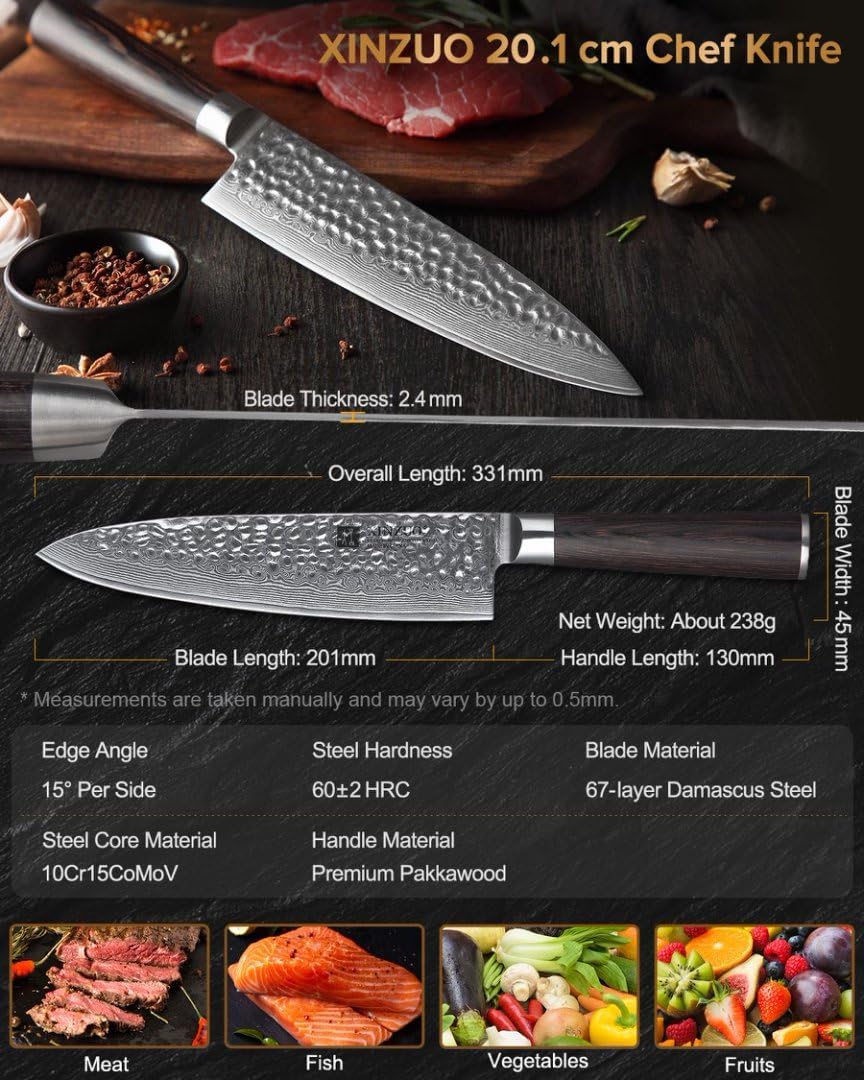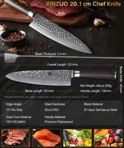 XINZUO Couteau de Chef 20.1cm Acier Damas, Couteaux de Cuisine Tranchants Forgé Couteau Gyuto Couteau à Trancher avec Poignée en Bois de Pakka Ergonomique- He Série