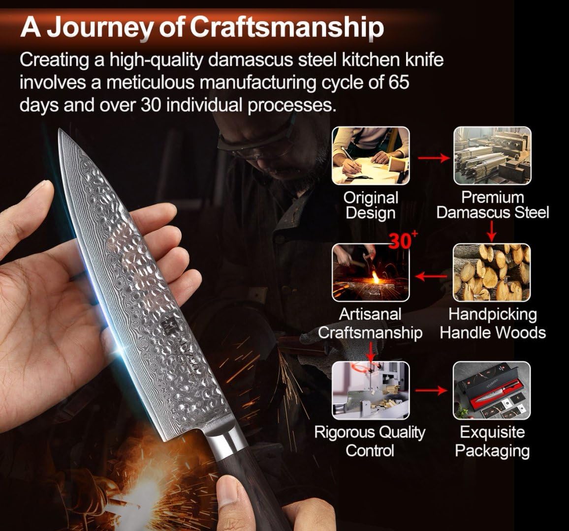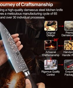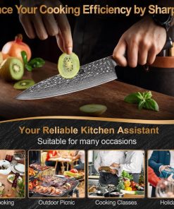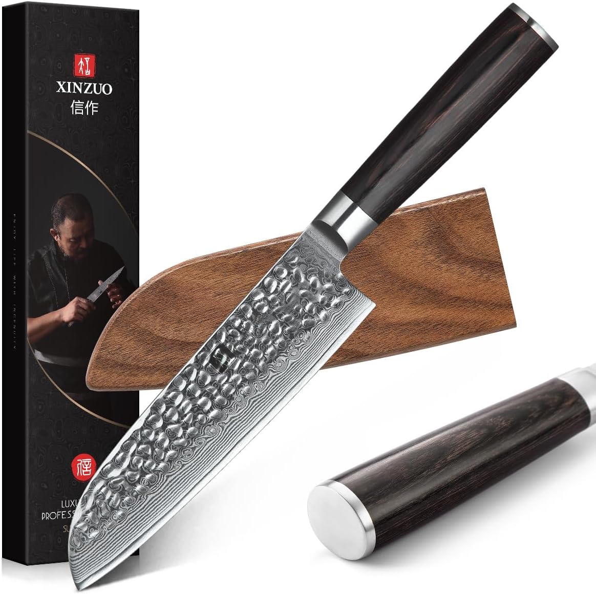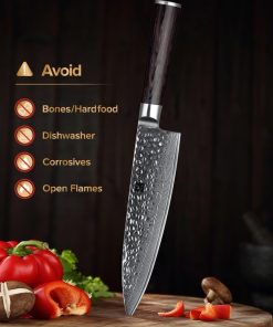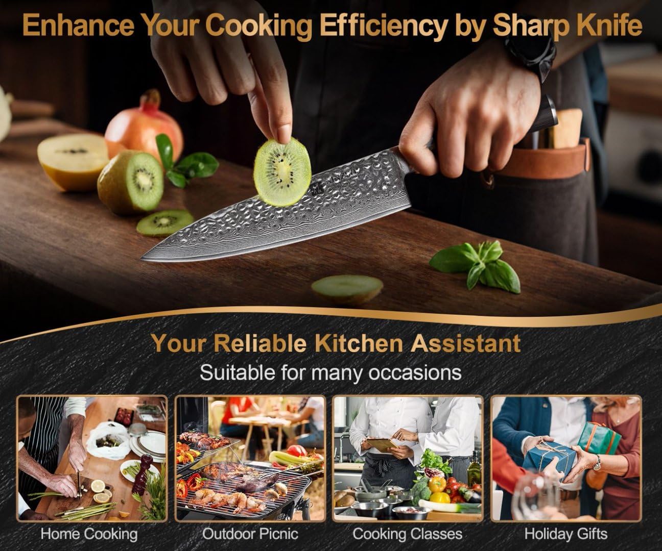 XINZUO Couteau de Chef 20.1cm Acier Damas, Couteaux de Cuisine Tranchants Forgé Couteau Gyuto Couteau à Trancher avec Poignée en Bois de Pakka Ergonomique- He Série