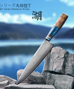 XINZUO Couteau de Chef 20.1cm Acier Damas, Couteaux de Cuisine Tranchants Forgé Couteau Gyuto Couteau à Trancher avec Poignée en Bois de Pakka Ergonomique- He Série