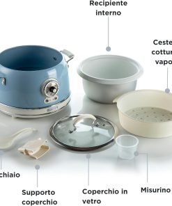 Le cuiseur Ariete 2904 est une excellente surprise: joli look vintage en celeste, capacité pratique de 3,5 L et cuisson vapeur fiable. Le revêtement céramique rend le nettoyage facile et le riz sort toujours moelleux; je l’utilise aussi pour cuire des légumes, et il s’en sort très bien. Simple à utiliser, compact et d’un très bon rapport qualité-prix.