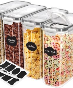 - Ensemble De 6 Conteneurs À Céréales – Notre ensemble complet de conteneurs à céréales comprend 4 conteneurs (4 L/ 135,25 Oz), des autocollants unis et un marqueur blanc pour tableau noir pour faciliter l’étiquetage