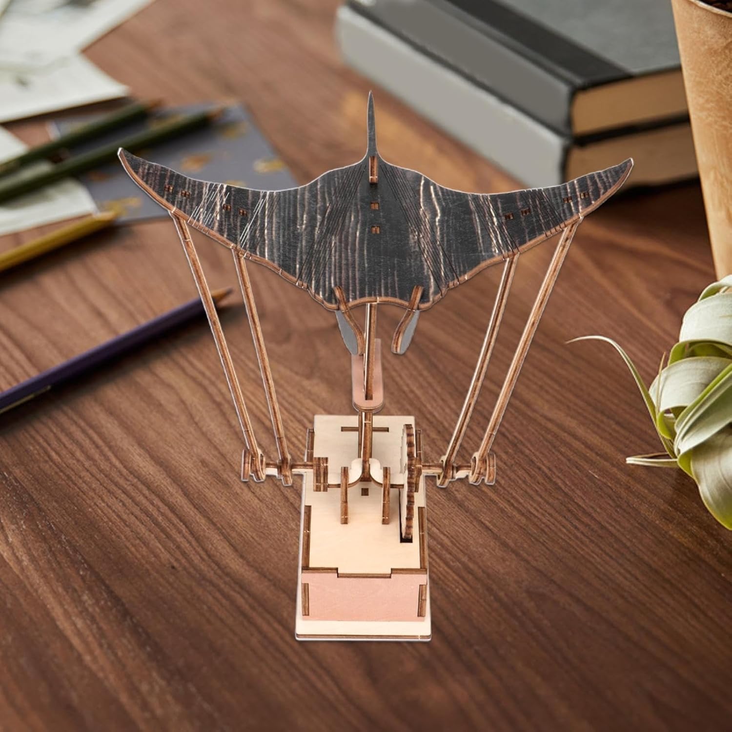 Article bien réalisé et discret, la raie manta en bois apporte une jolie touche décorative au bureau. La finition est soignée, le mouvement est fluide et l’ensemble donne une impression réaliste sans être envahissant. Bon rapport qualité-prix.