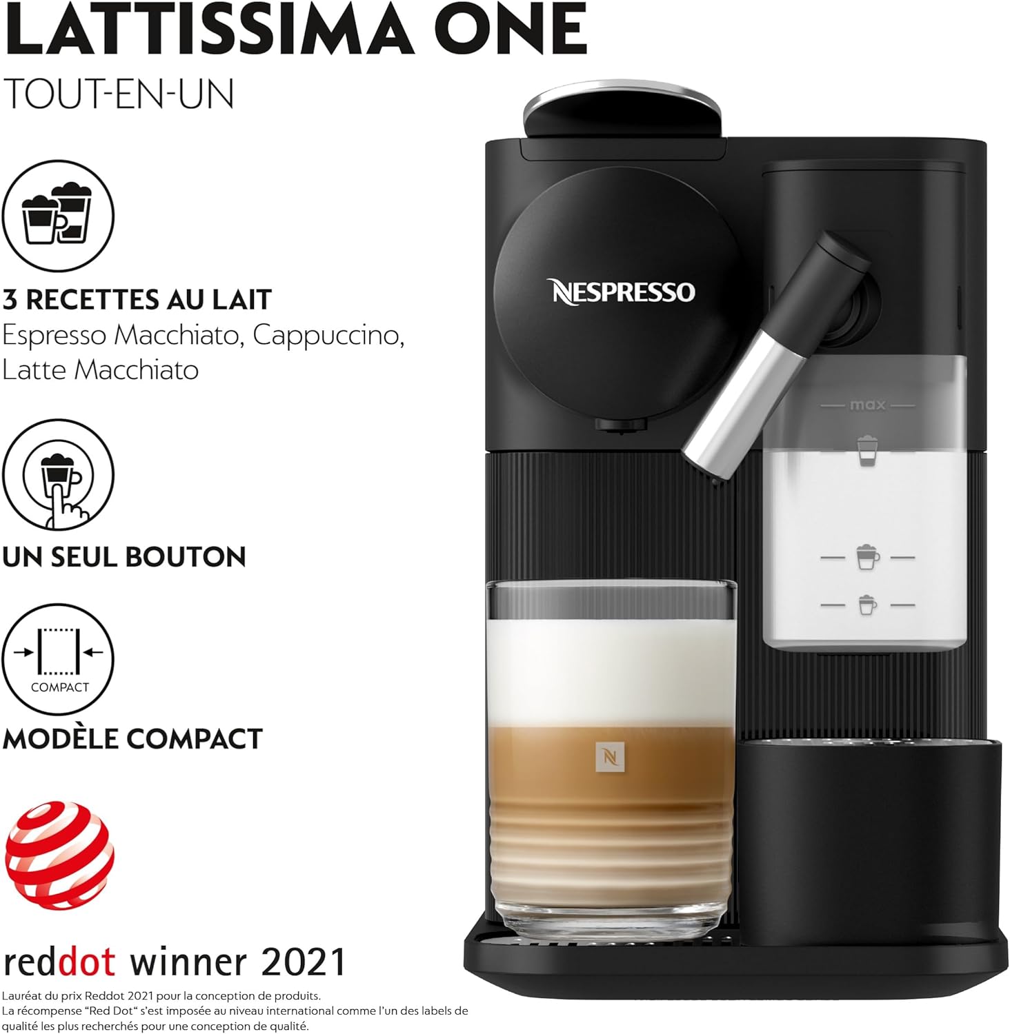 - 3 RECETTES DE LAIT Créez et choisissez votre boisson préférée à la maison parmi l’espresso macchiato, le cappuccino et le latte macchiato. Pot à lait en portion individuelle avec couvercle amovible pour se remplir facilement entre les préparations