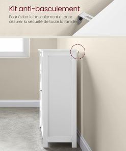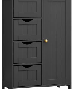 VASAGLE Meuble Salle de Bain Rangement, Armoire Gain de Place, Commode, avec 4 Tiroirs, Placard avec Porte, Étagère Réglable, 35 x 65 x 90 cm, Blanc Nuage LHC042W01