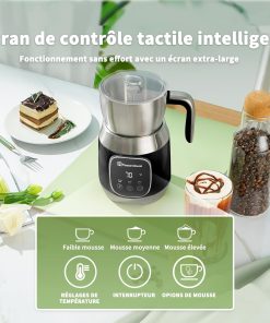 - 【Exceptional Touch Button Control】Ce mousseur à lait professionnel et élégant est doté d'un panneau de commande tactile qui vous permet de choisir facilement entre les fonctions. Les commandes éclairées offrent six réglages : mousse froide, mousse froide et aérée, mousse chaude, mousse chaude et aérée, lait chaud ou chocolat chaud. Préparez une mousse crémeuse de qualité barista pour votre café au lait ou votre cappuccino en appuyant simplement sur un bouton