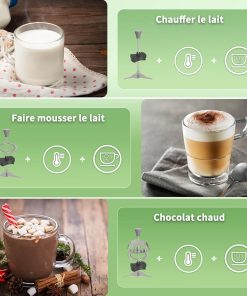 En dehors du prix exorbitant, cette appareil est vraiment bien, il y a trois choix de mousse, de la plus faible à la plus onctueuse. Ce que j’apprécie le plus, pour faire un chocolat chaud ou un café crème c’est la température à 70 cela vous donne une boisson ni tiède ni brulante, mais juste la température idéal pour le boire tout de suite. Pour obtenir un chocolat chaud, je fais fondre quelques carrés de chocolat avec un peu de lait au micro onde, je mets la machine en route et après environ 1 minute, je verse mon chocolat fondu dans l’appareil (le pichet est équipé d’un couvercle simple à mettre et à oter. Les éléments sont faciles à nettoyer, je ne passe pas le pichet en machine car en le lavant de suite il est vite propre, même chose pour « l’agitateur » qui tient tout seul car le centre du pichet est aimanté. Donc à part le prix, (je me suis vraiment fait plaisir !) je suis très contente de cet appareil qui de plus ne prend pas beaucoup de place et ne fait pratiquement pas de bruit, juste un bip lorsque la préparation est prête.