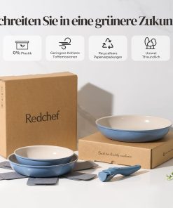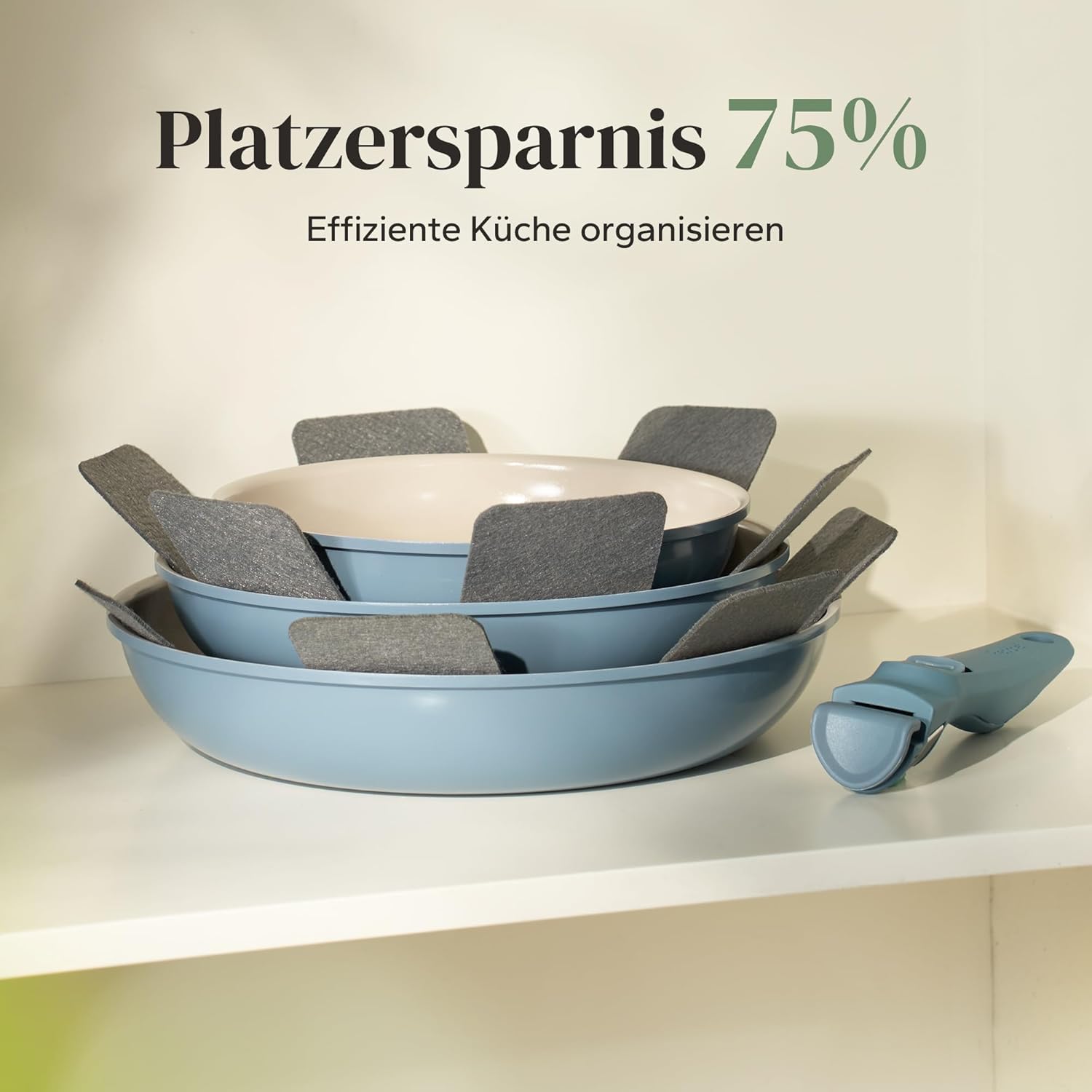 Redchef Lot de poêles et poêles en céramique avec poignée amovible et anti-adhésives 20/24/28 cm pour le camping, sans PTFE, sans PFOA, peu encombrantes, passent au lave-vaisselle (bleu)