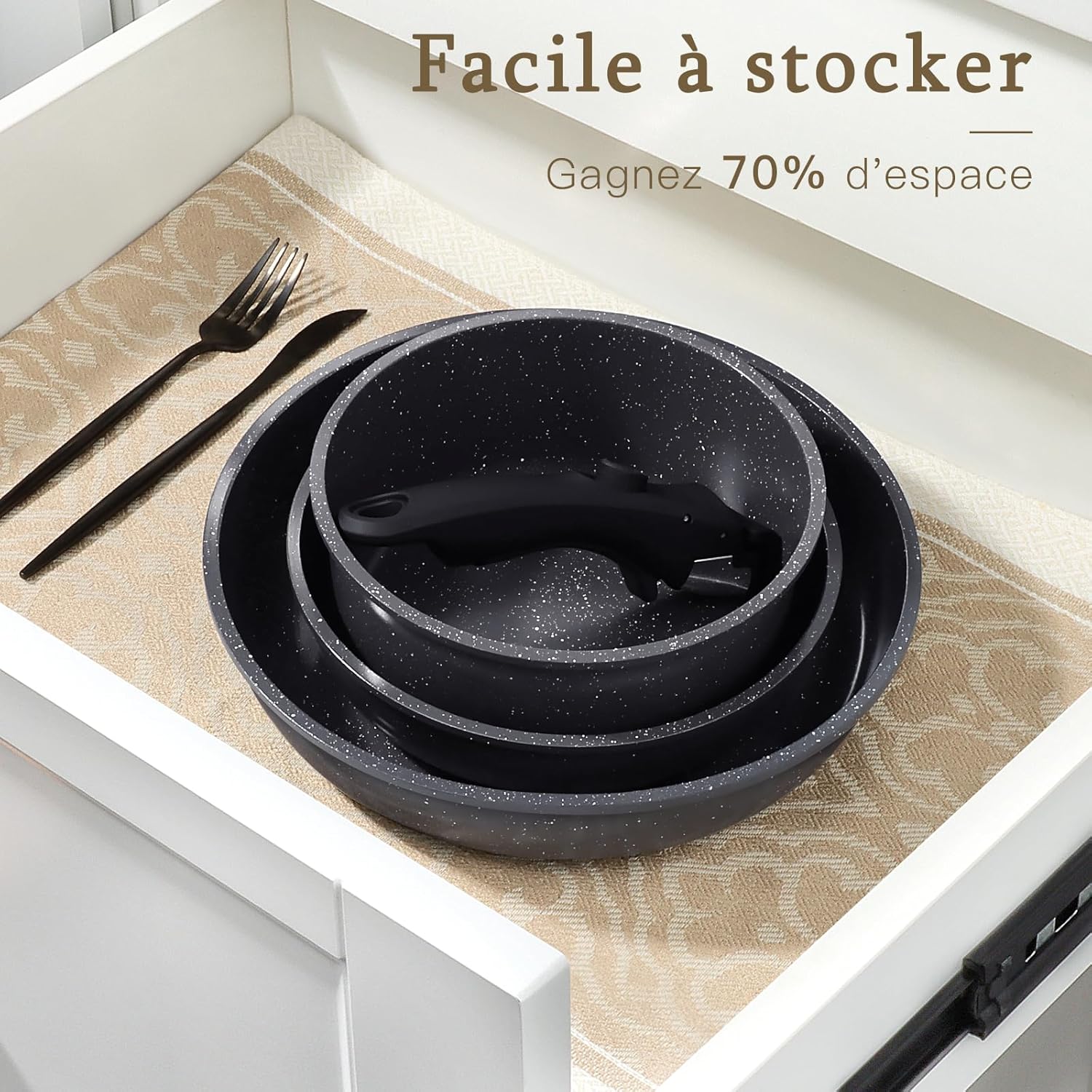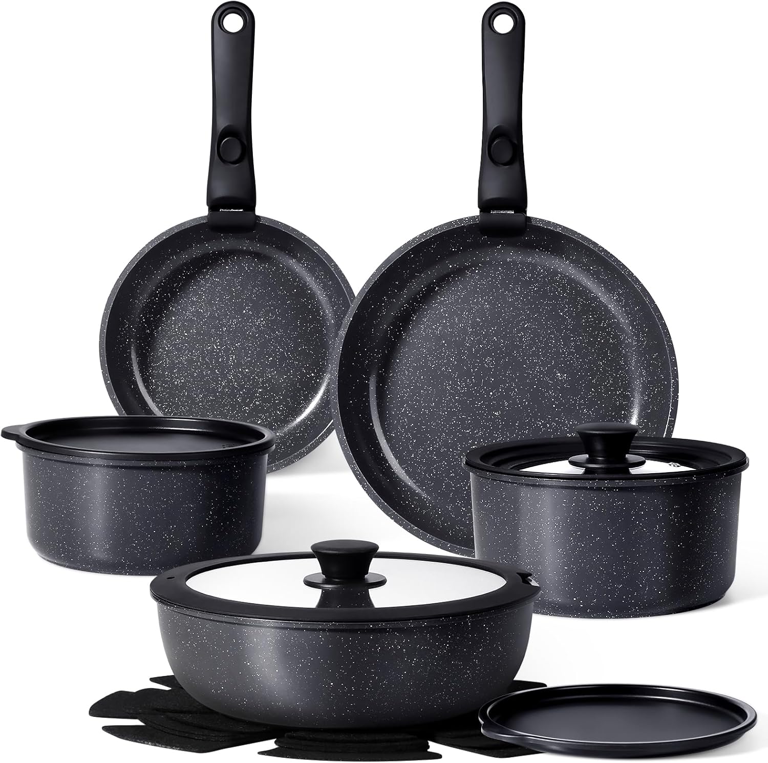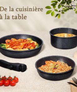 GiPP Set de Poêles et Casseroles Avec Revêtement Céramique Antiadhésif – 15Plus Pièces Sets de Casseroles Avec Poignées Détachables, Sans Toxiques, Compatible Induction, Four et Lave-vaisselle