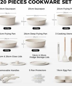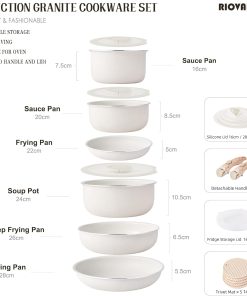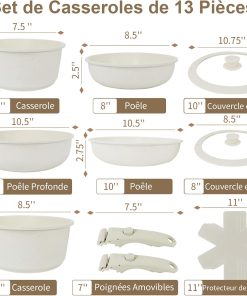 GiPP Set de Poêles et Casseroles Avec Revêtement Céramique Antiadhésif – 15Plus Pièces Sets de Casseroles Avec Poignées Détachables, Sans Toxiques, Compatible Induction, Four et Lave-vaisselle