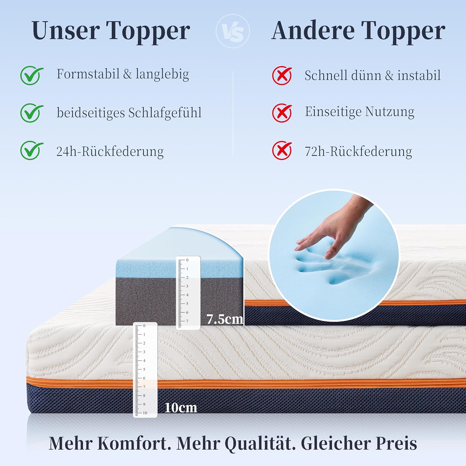 - 5️⃣ Prêt à l’Emploi & Service Fiable Solviente Votre surmatelas 10 cm est compressé et roulé pour un transport facile. Après ouverture, laissez-le reposer 24 à 72 heures dans une pièce ventilée pour qu’il reprenne sa forme complète. Notre équipe Solviente reste disponible à tout moment si vous avez la moindre question