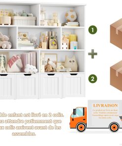 - Meuble de Rangement Chambre Multifonctionel : Étagère de rangement enfant peut être placée dans la chambre d’enfant, la salle de jeux pour enfants, la crèche et l’aire de jeux pour enfants. Peut être utilisé comme meuble rangement jouet, bibliotheque enfant, étagère pour enfants, rangement jouet enfant, etc