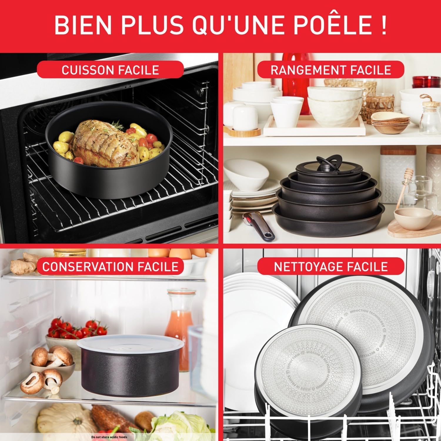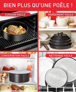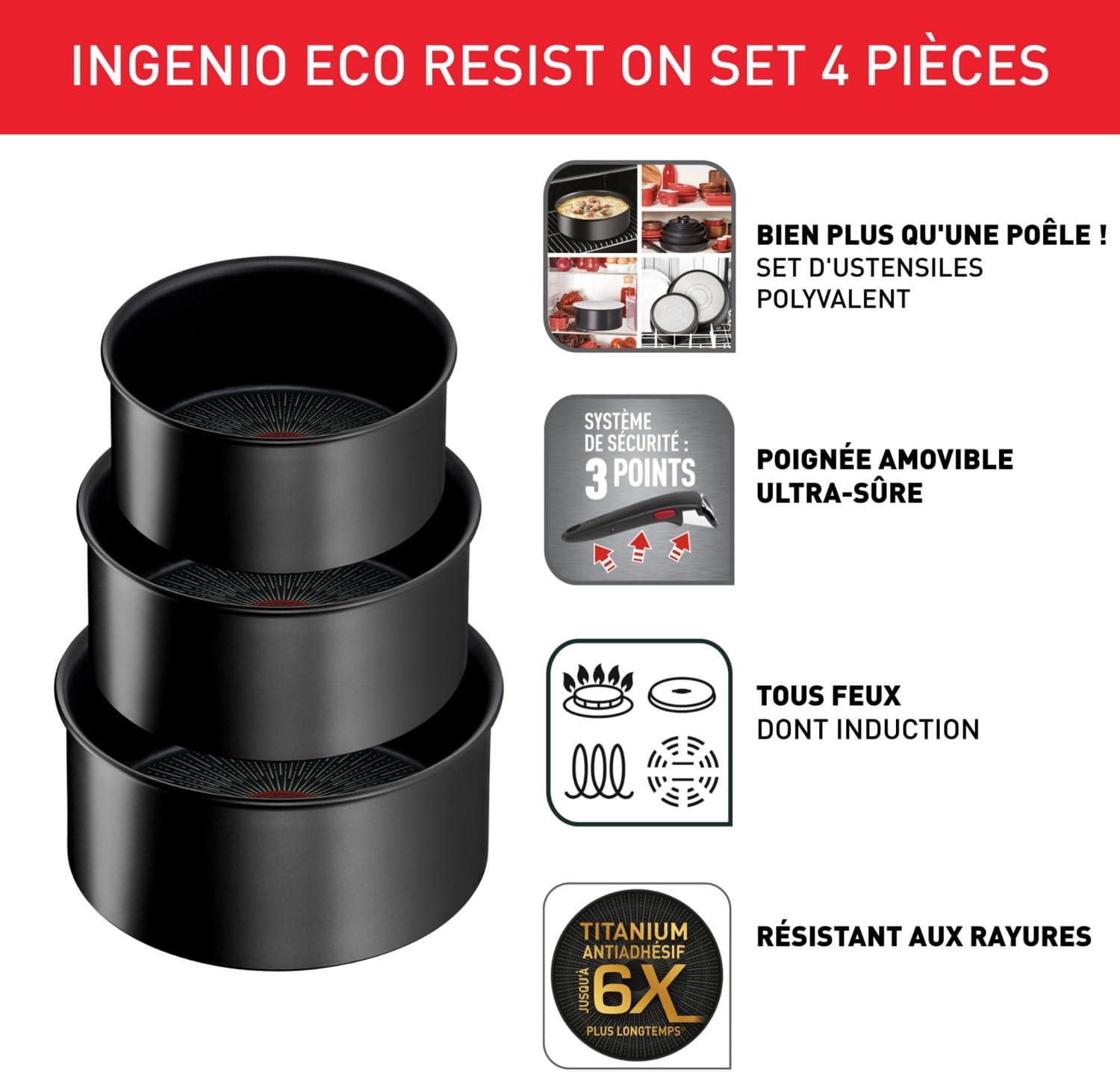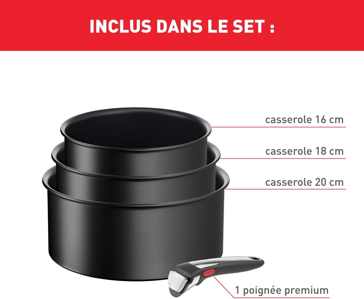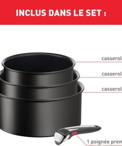 Tefal Ingenio Lot de 3 casseroles + poignée amovible, Induction, Revêtement antiadhésif, Empilable, Compatible lave-vaisselle, Fabriqué en France, Eco Resist On L7679202